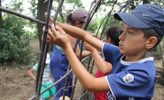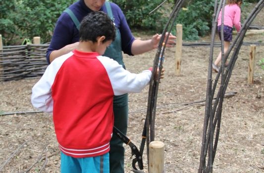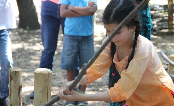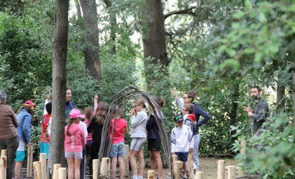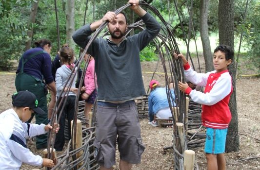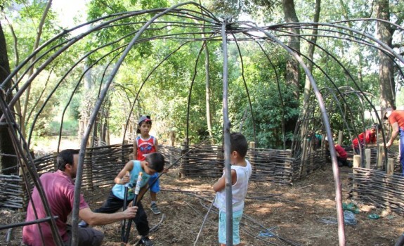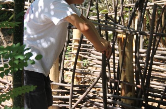 Et voilà, la cabane est finie ! Les quatre derniers groupes ont terminé le tressage, la toiture, et ont même pu peaufiner quelques cloisons ! Prochaine étape assurée par le château : végétaliser l’ensemble pour en faire une vraie cabane de fée !